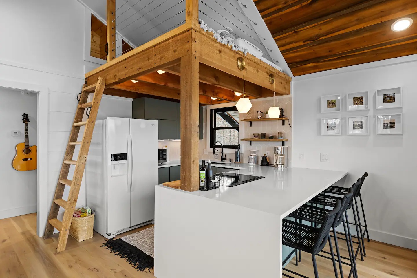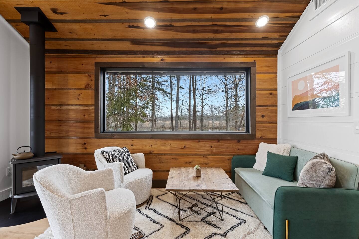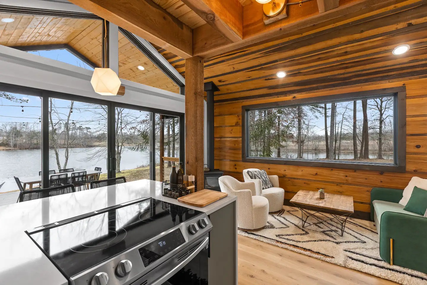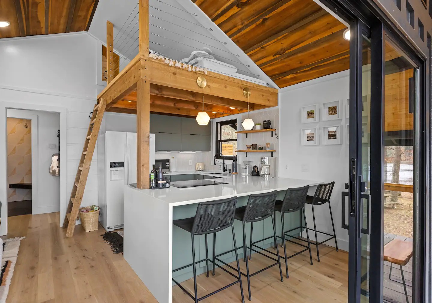 The dominance of natural materials is important in the interior of the wooden tiny house. Wooden floors, walls, and ceilings help create a rustic and stylish atmosphere. By preserving the natural tones of the wood, you can make the space warm and inviting. You can also choose wooden materials in the selection of furniture and use comfortable seating groups furnished with organic fabrics.