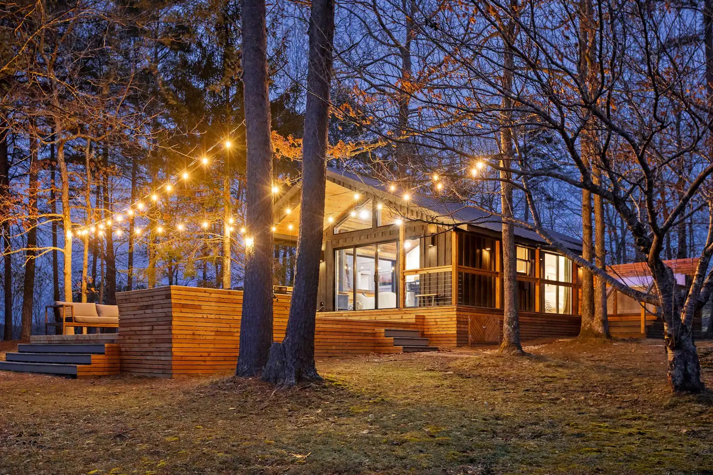 Also, you should not forget about the exterior of your tiny house. You can use the patio or terrace to relax outdoors and enjoy nature. An outdoor space with wood flooring, outdoor furniture, and vegetation can feel like an expanded part of your home.