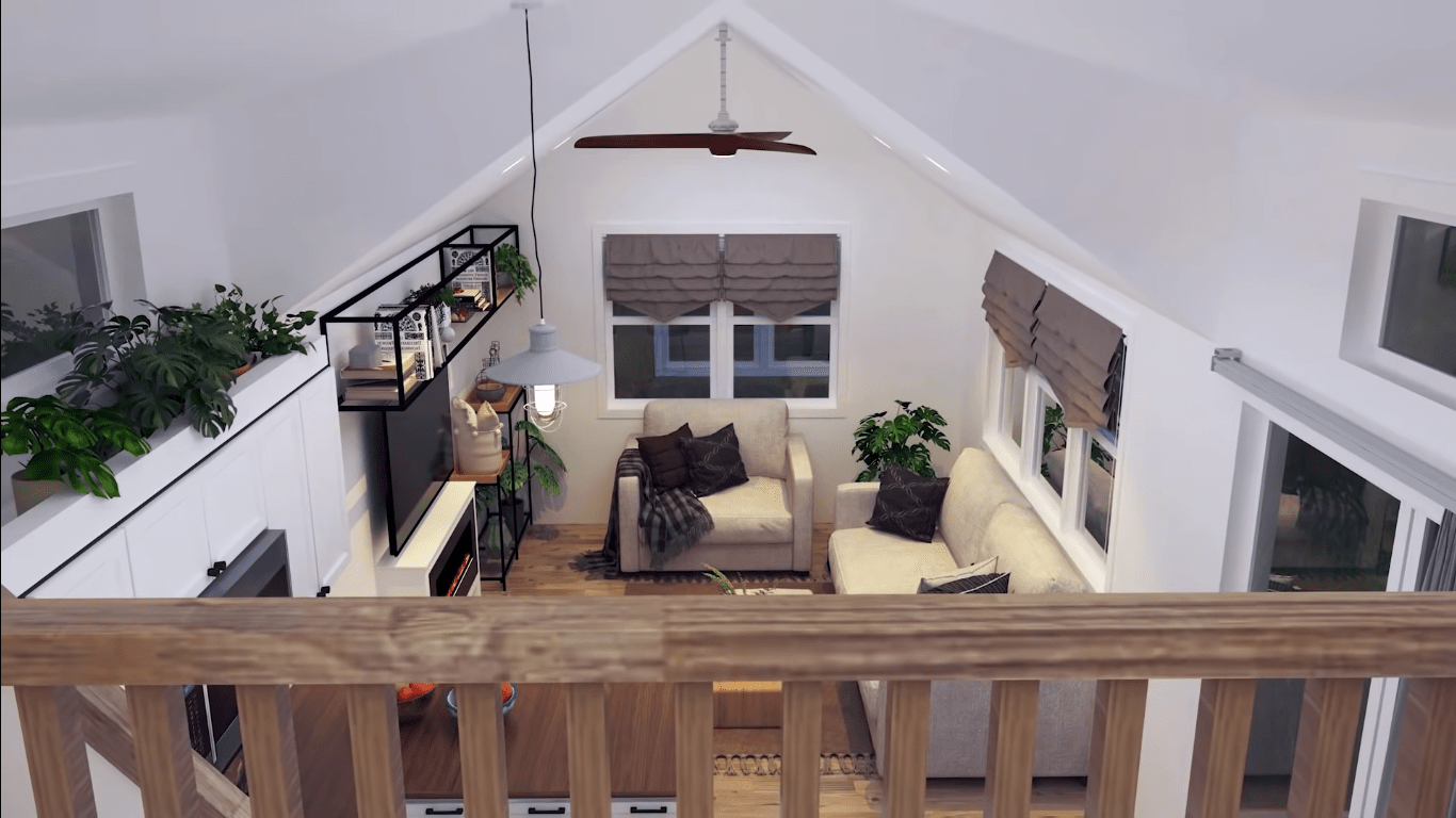Ecological sensitivity is one of the key design principles of this tiny house. The use of renewable energy sources, energy-efficient appliances, water-saving fixtures, and environmentally friendly building materials helps to minimize the environmental impact of the home. In addition, a natural water source is provided for garden irrigation thanks to the rainwater collection system.